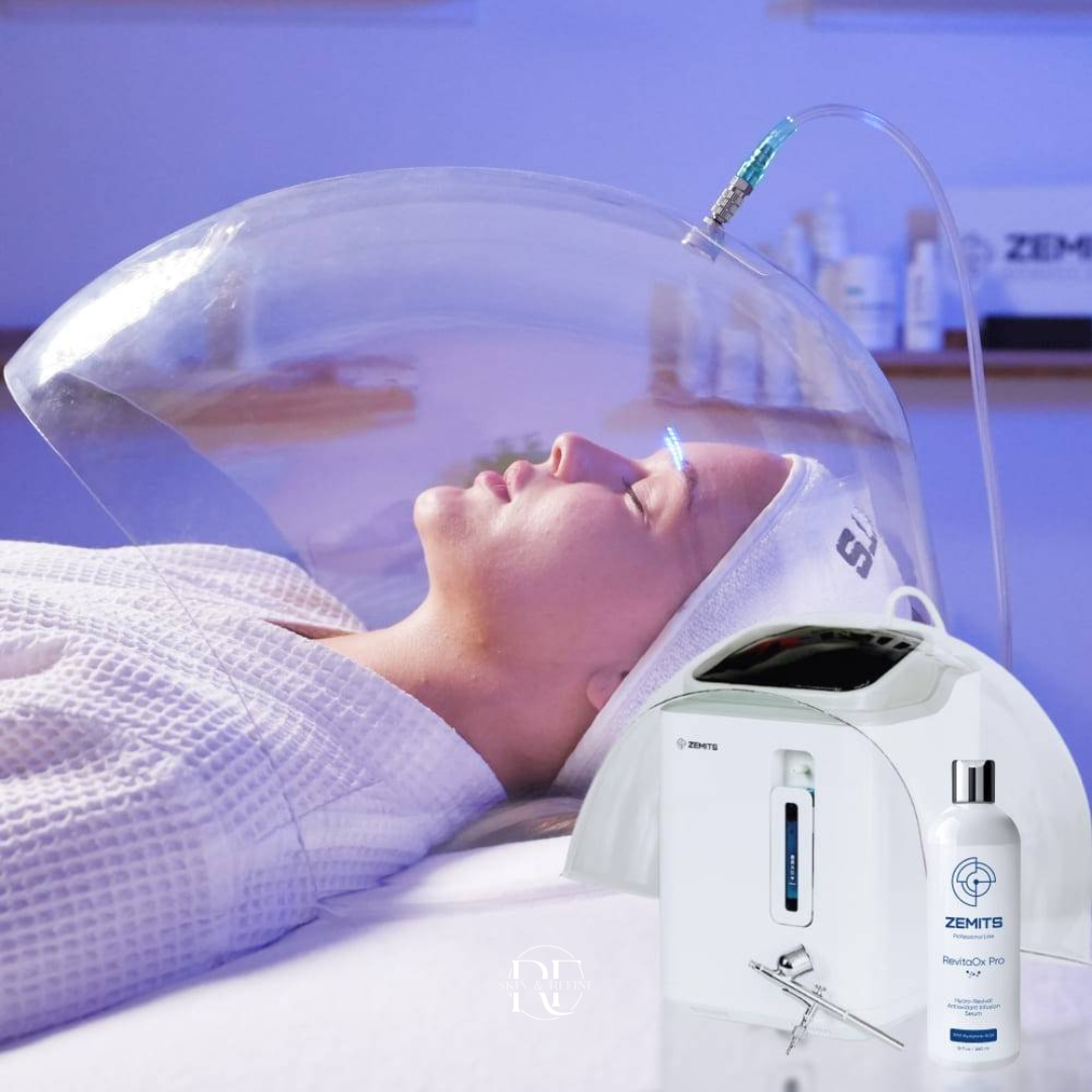 Zemits OxyVelour O2 Infusion Treatment is a luxurious, oxygen-infused facial designed to deeply hydrate, revitalize, and restore radiance to the skin. This advanced therapy combines oxygen infusion, hyaluronic acid, and antioxidant-rich serums to nourish the skin at a cellular level—enhancing absorption of active ingredients, stimulating skin renewal, and visibly improving texture, tone, and signs of aging or UV damage.